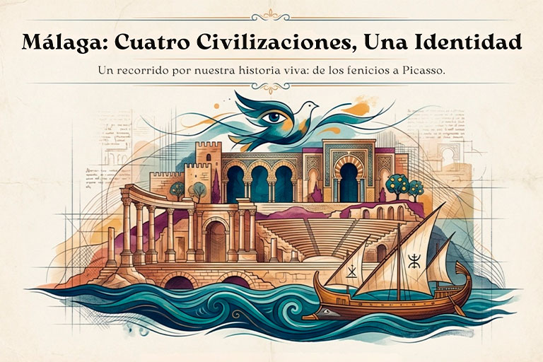 Málaga es una de las ciudades más antiguas de Europa. Sus casi tres milenios y quizá alguno más, como sugieren hallazgos junto a la Catedral— han dejado huellas únicas y una identidad propia forjada por cuatro grandes civilizaciones: fenicios, romanos, andalusíes y castellanos.