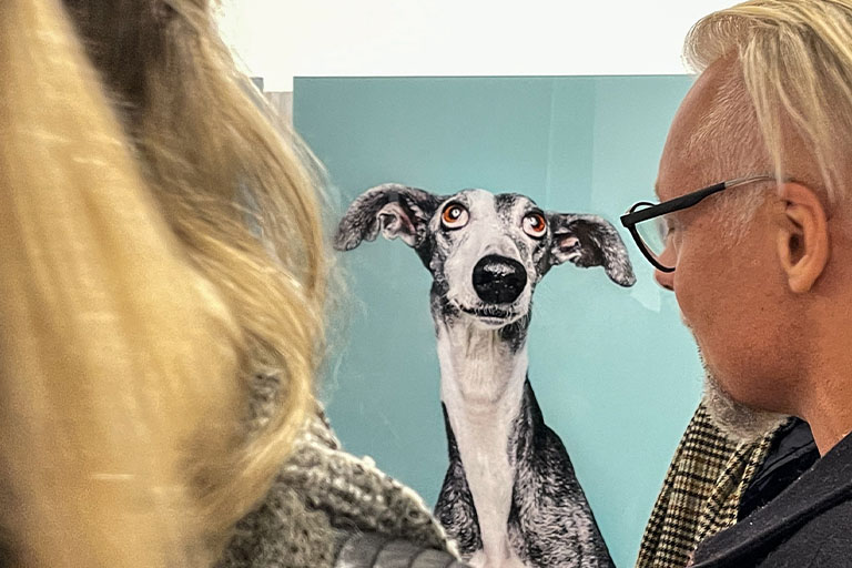 Casualmente, dos de los perros retratados para esta exposición provienen de la Protectora de Animales de Málaga (Luna) y de Galgos en Familia (Ishtar), un refugio situado en Alhaurín de la Torre.
