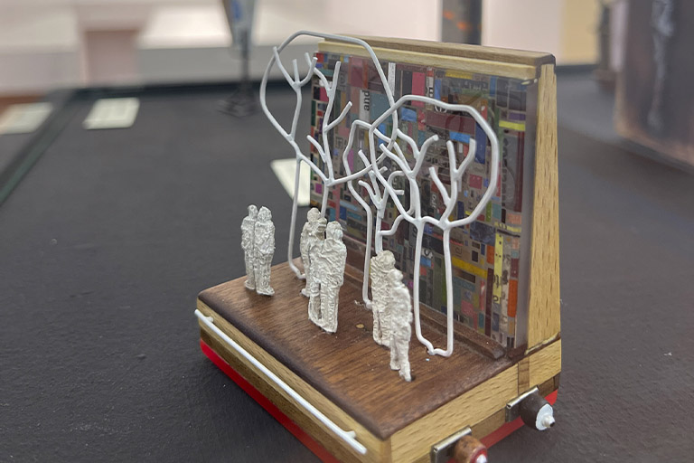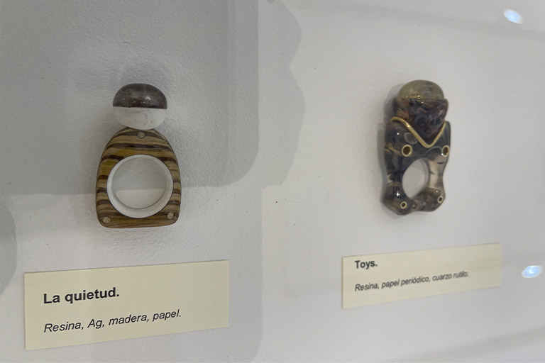 Juanjo García es un artista autodidacta que siempre ha buscado el movimiento en sus piezas, desarrollando su obra dentro de la Joyería Artística mediante materiales y formas y la creación de objetos luminosos por medio de transparencias, luces y derivados eléctricos, encontrando este lenguaje tan característico en sus piezas.