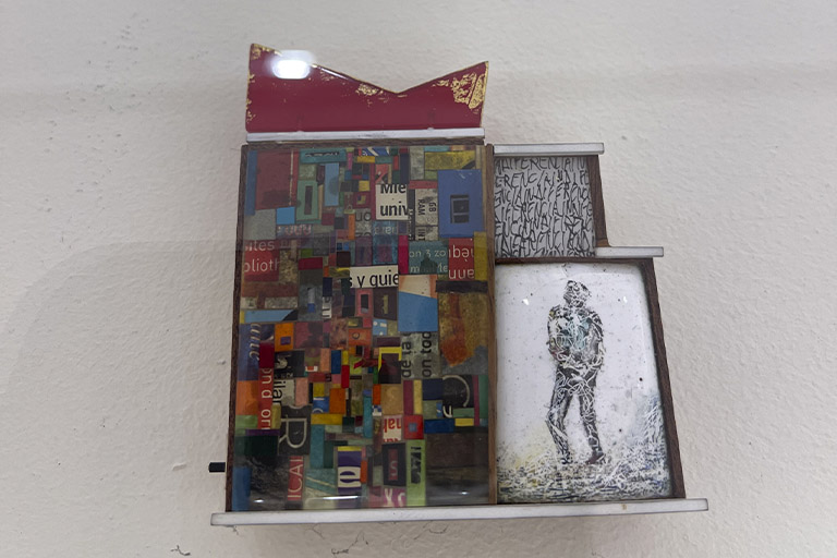 La idea principal que subyace en esta exposición ha sido la de jugar con todo lo aprendido, transformándolo dentro de su imaginario personal: sus composiciones son siempre una mezcla o conjunto de retales, donde podemos percibir lo que el artista siente en ese momento de creación. Cada pieza termina siendo un reflejo de sus inquietudes, quedando un pedacito de sí mismo en cada parto a modo de poso o sedimento; al mismo tiempo, cabe destacar el trasfondo poético que hay en toda su obra, fruto de cierta contemplación melancólica, y hasta cierto punto onírica, del mundo que le rodea.