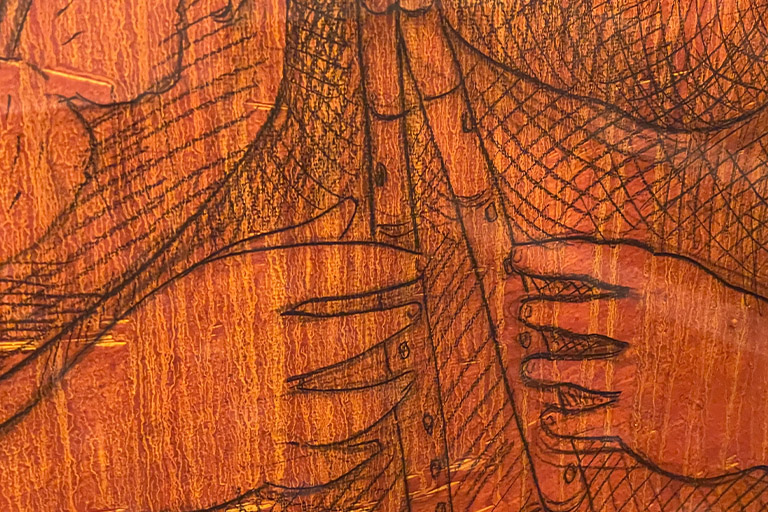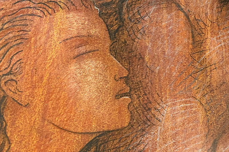 Se trata de una serie de dibujos en gran formato sobre papel, realizados en carboncillo, lápices, pigmentos y materiales de origen natural realizados entre 1016 y 2023, en los que el artista trata de nuevo uno de sus temas preferidos, la mitología, con sus peculiares personajes de rostros simétricos y ojos almendrados que nos trasladan a la antigüedad grecorromana.