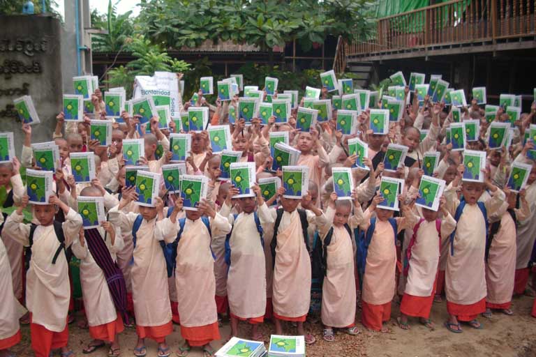 Centrados desde el inicio en Birmania (Myanmar), donde durante una década de ilusión compartida ya es una realidad la construcción de 4 escuelas, en cada curso escolar dotamos además de los recursos básicos necesarios (libretas, lápices, bolígrafos, mochilas…) para 12 escuelas y una agradecida comunidad de 3.550 niños y niñas. También se presta ayuda a varias escuelas del ámbito rural en otro destino, Nicaragua.