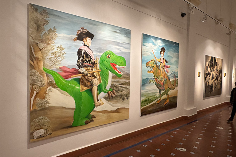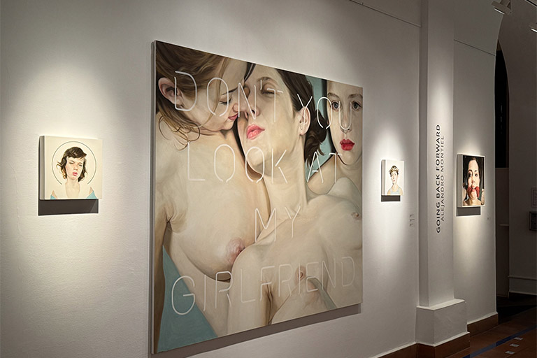 La muestra es una experiencia entre el pasado y el presente. Las obras de Alejandro Montiel nos llevan de viaje al Salón de París del siglo XIX, y al mismo tiempo sus contenidos nos arrastran a la contemporaneidad a través de una mirada crítica, sarcástica, irónica y emocional. La exposición está compuesta de veintidós obras creadas ex profeso que recorren el proyecto vital del artista.