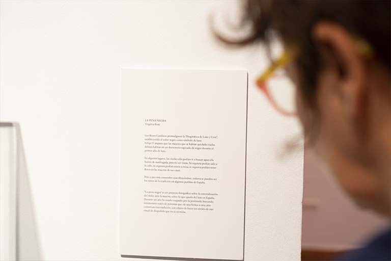 La pena negra es un proyecto fotográfico sobre la externalización del dolor ante la muerte, sobre lo que queda del luto en España. Mi interés ha sido investigar cuál la historia de esta costumbre en nuestro país, a través de lo escrito y de 13 testimonios reales de personas que aun lo conservan; con objeto de hacer un retrato de este ritual de despedida que no se termina».