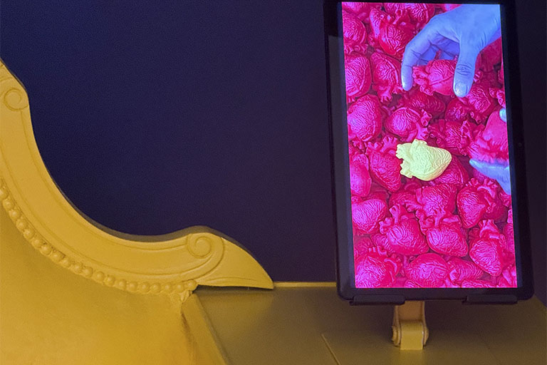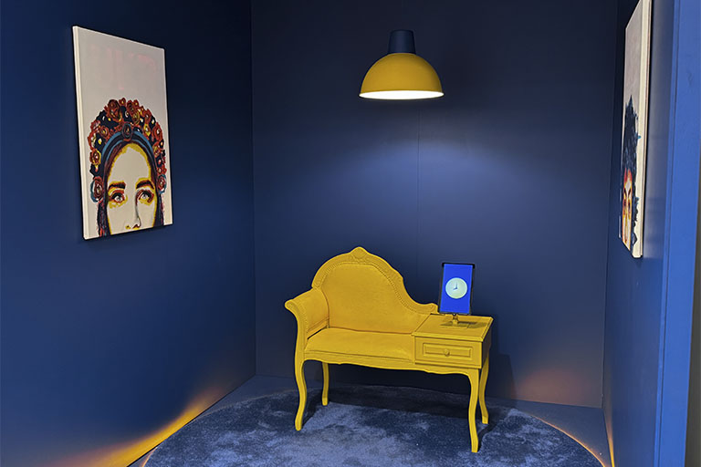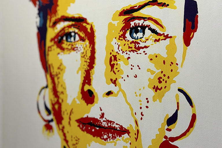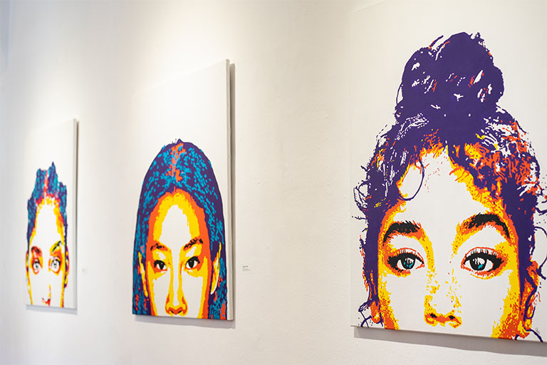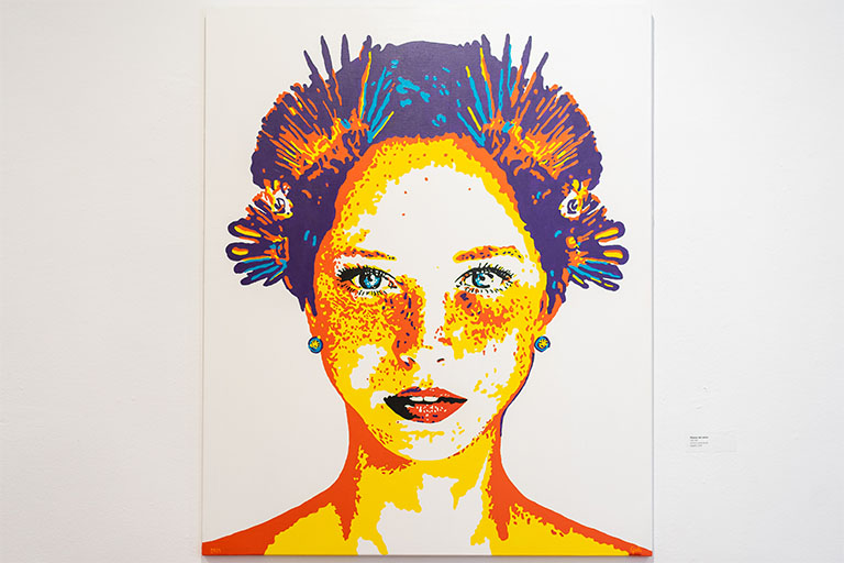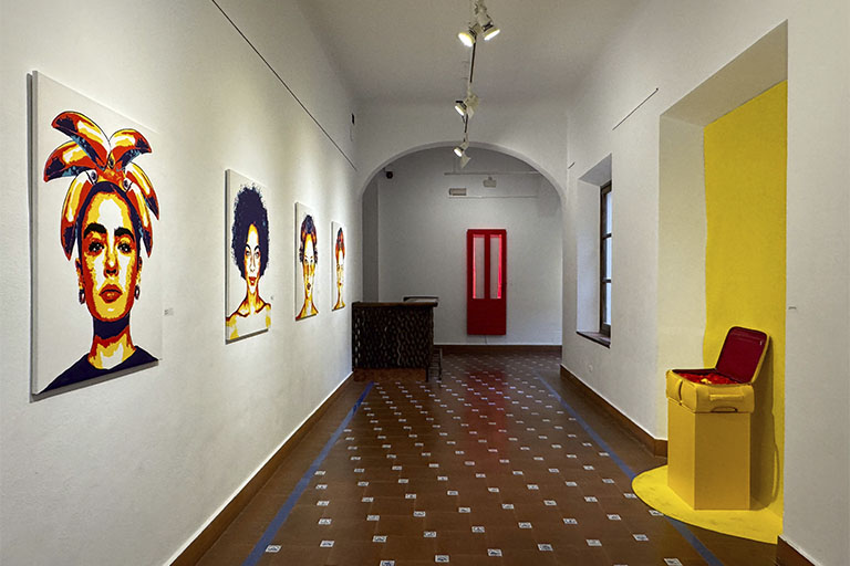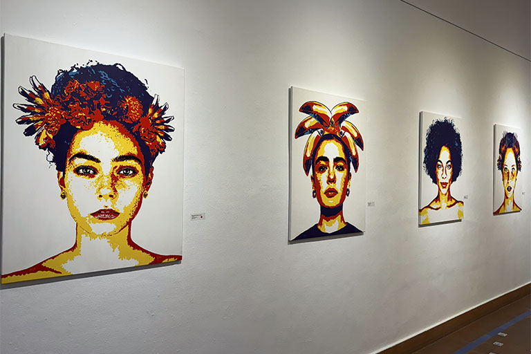 El proceso creativo no se limita a la representación física de las mujeres, sino que implica una cuidadosa selección y composición de imágenes. La artista se sumerge en los testimonios, emociones y recuerdos de cada mujer para dar vida a las protagonistas en los lienzos. La paleta de colores utilizada en estas obras desempeña un papel fundamental en la narrativa visual. El rojo simboliza el valor y la determinación que arde en el corazón de cada mujer, impulsándolas a dejar atrás su tierra natal en busca de un futuro mejor. El amarillo irradia la alegría y la esperanza que encuentran en su viaje, incluso en medio de las adversidades. Estos colores se mezclan con el azul, blanco y violeta en los lienzos, como pinceladas de esperanza y lucha, relatos visuales de historias reales y el profundo anhelo de un nuevo horizonte.