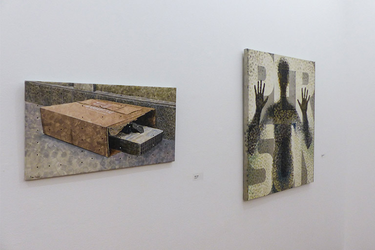 Las obras que se exponen en el Ateneo de Málaga se organizan en dos series -“person” y “eden”- que plantean cuestiones sobre el ecologismo, la libertad individual y la responsabilidad social. Hacen reflexionar sobre un futuro incierto que no será, por nunca jamás, el Edén pretérito. Dibujan un futuro atroz para hacernos pensar –tal vez, actuar- antes de que sea demasiado tarde. Ambas series se complementan y dialogan, ambas nos hablan del aislamiento, la desolación, la ceguera y el espacio inhabitado. Ni siquiera la belleza redime en un mundo violento que no da tregua. El acierto -la verdad- es un sofisma semienterrado donde la razón está ausente.