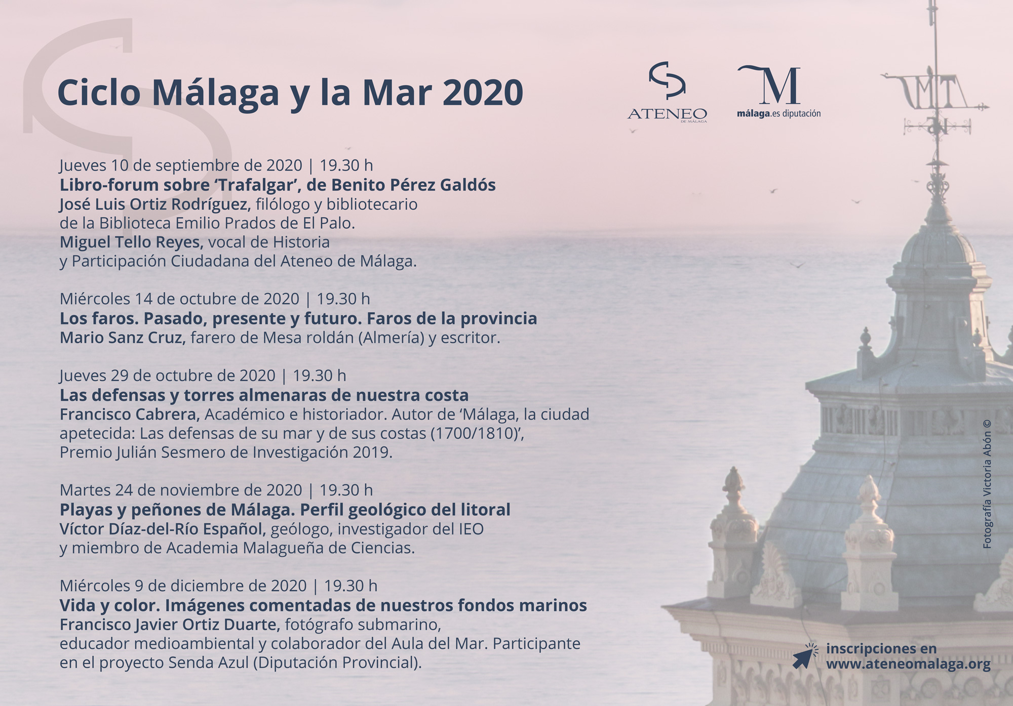 El próximo jueves 29 de octubre de 2020 tendrá lugar la tercera sesión del Ciclo Málaga y la Mar, organizado por el Ateneo con el apoyo de la Diputación de Málaga.
